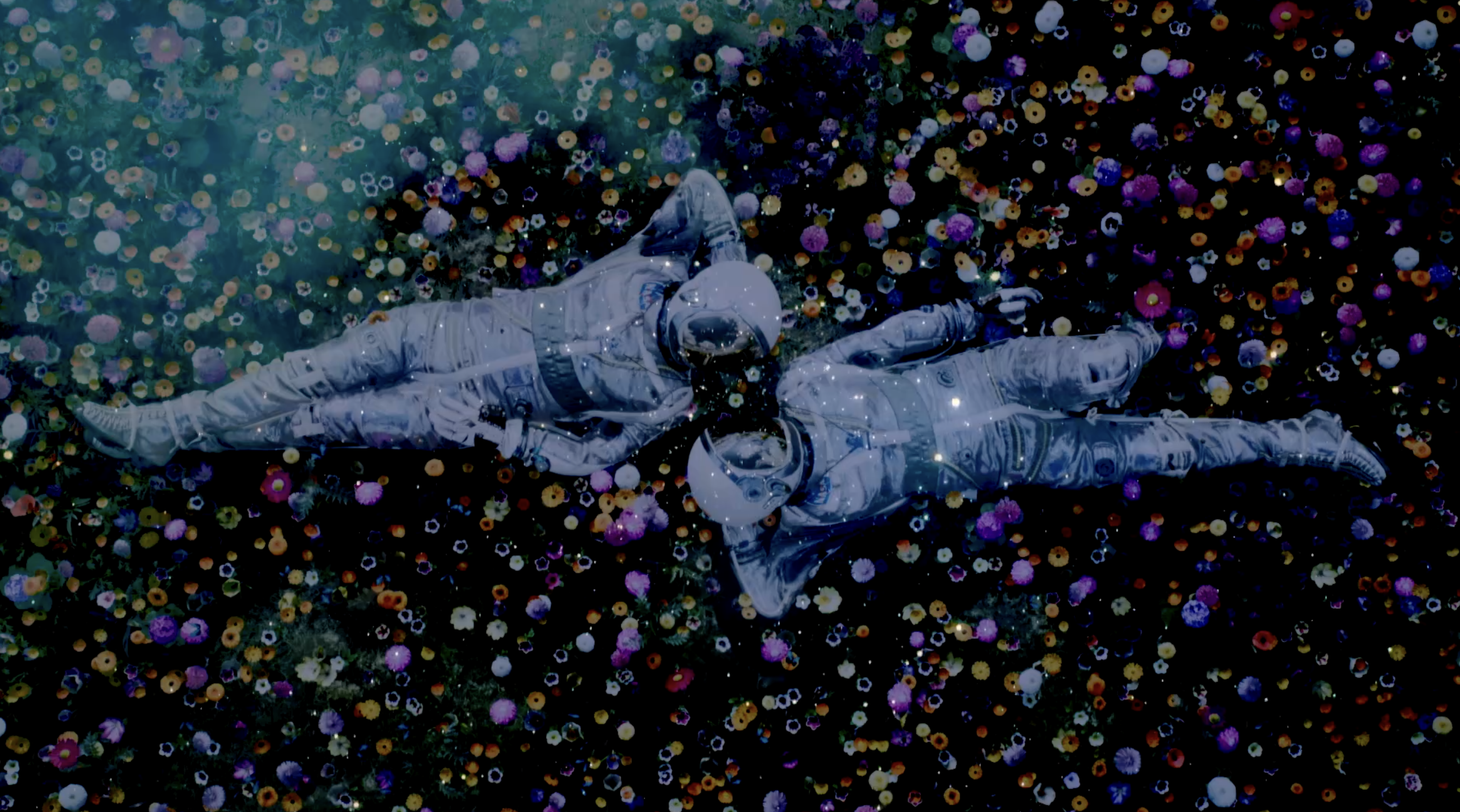 An official space-themed visualizer builds a surreal astronaut fantasy, blending depth-defying auras of streaming constellations and curious dueling landscapes to sync seamlessly with the otherworldly vibes of the soundtrack. Ethereal vibrant spring flowers float weightlessly beneath an intimate reflection, whilst intoxicating overlays of flying through the starry outer limits manifest the fanciful moods of the lyrics. A perfect escape from the sweltering dog days of summer heat.